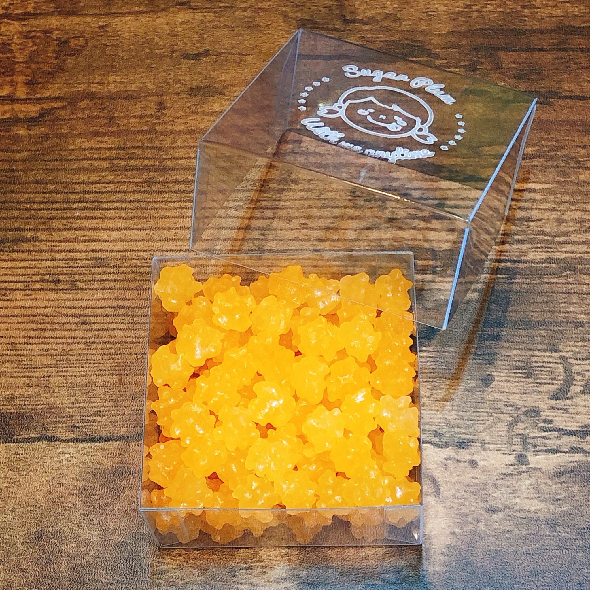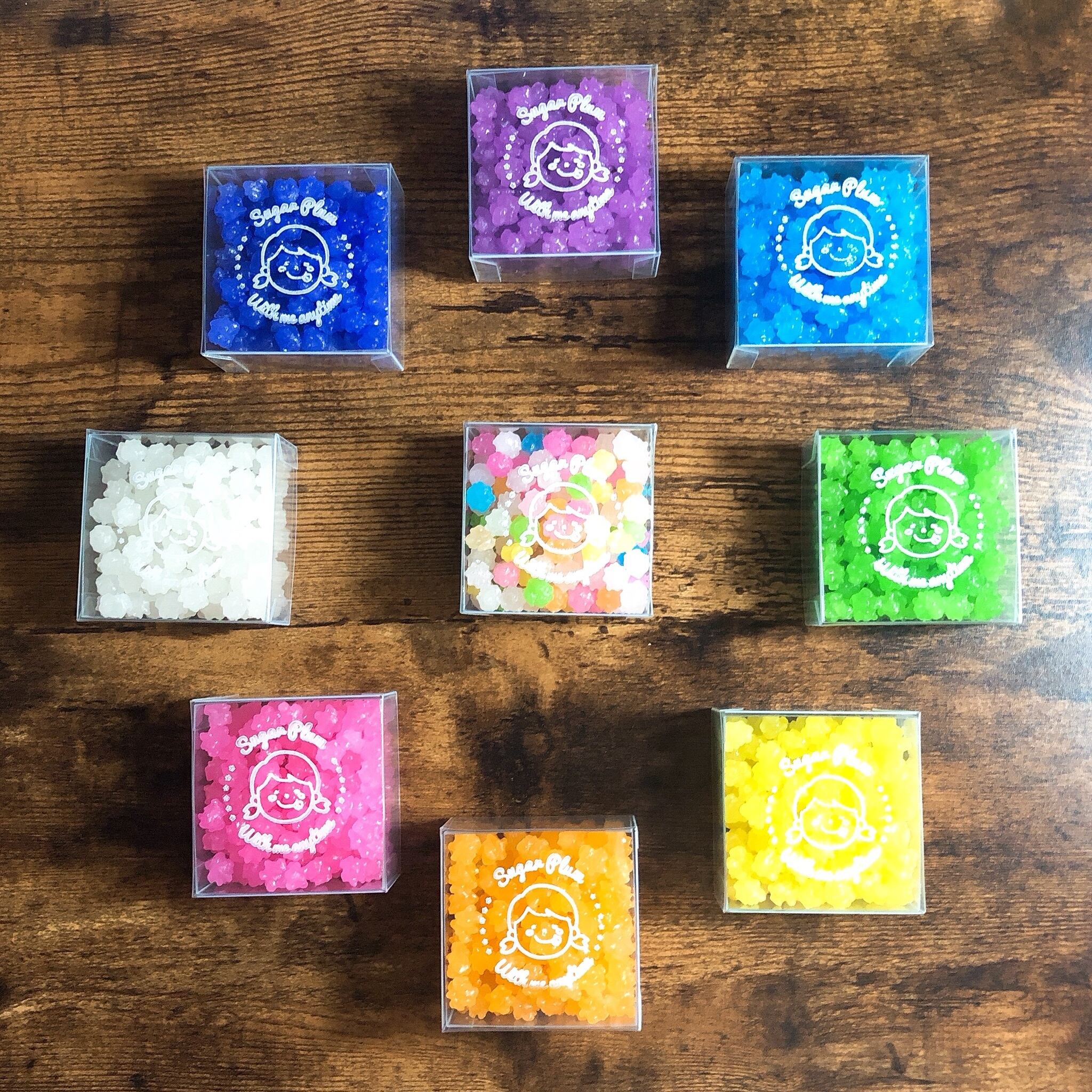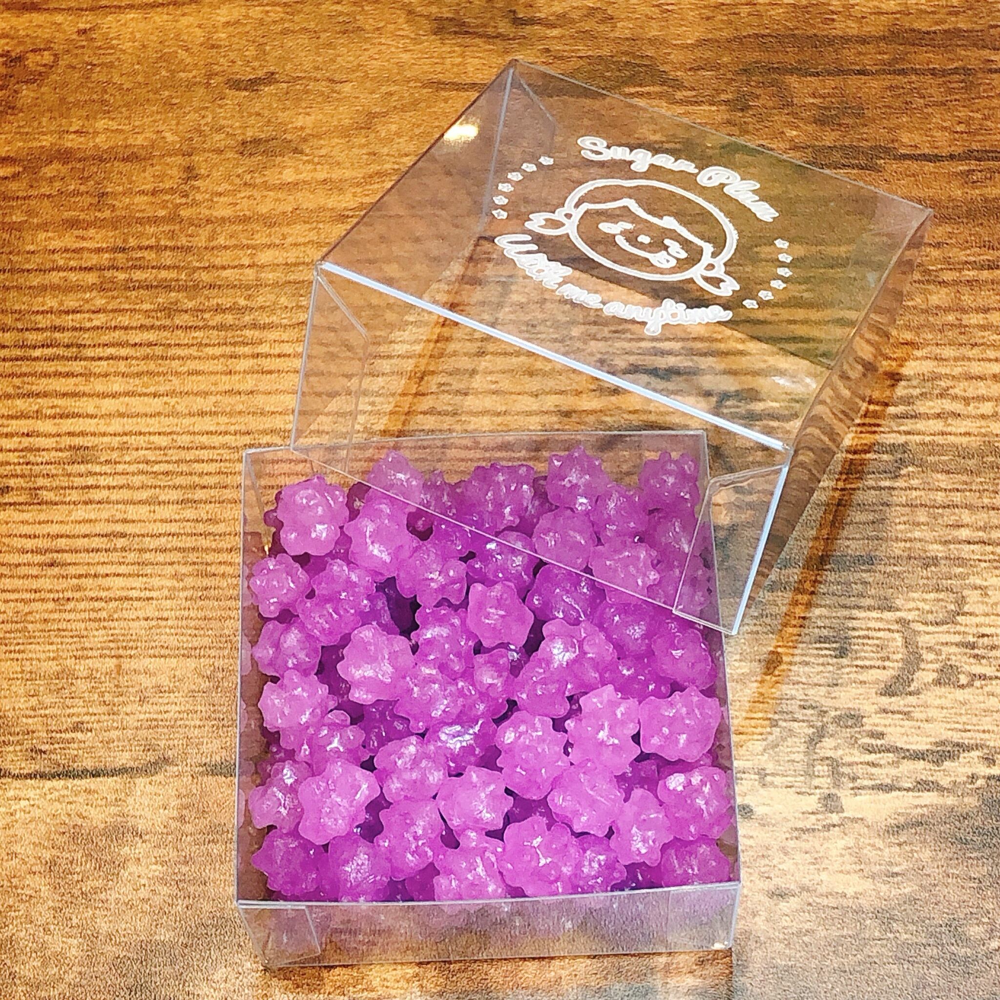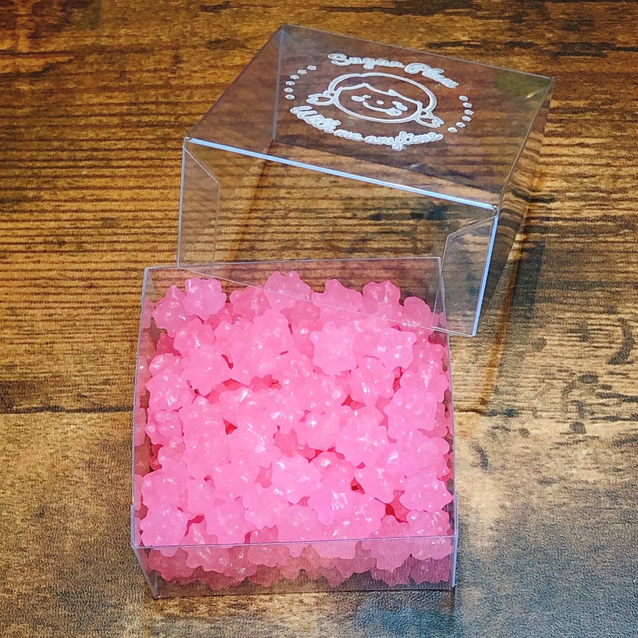 【原材料】砂糖、コーンスターチ、香料、着色料(赤3、赤106、黄4、黄5、青1)