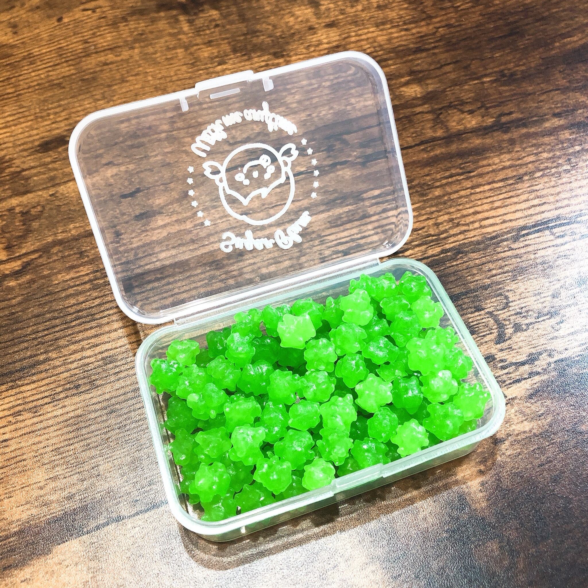 【原材料】砂糖、コーンスターチ、香料、着色料(赤3、赤106、黄4、黄5、青1)